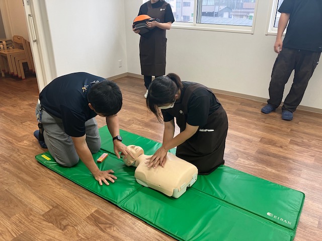 2回目の職員は思い出しながら、初参加の職員は緊張しながら受けました。