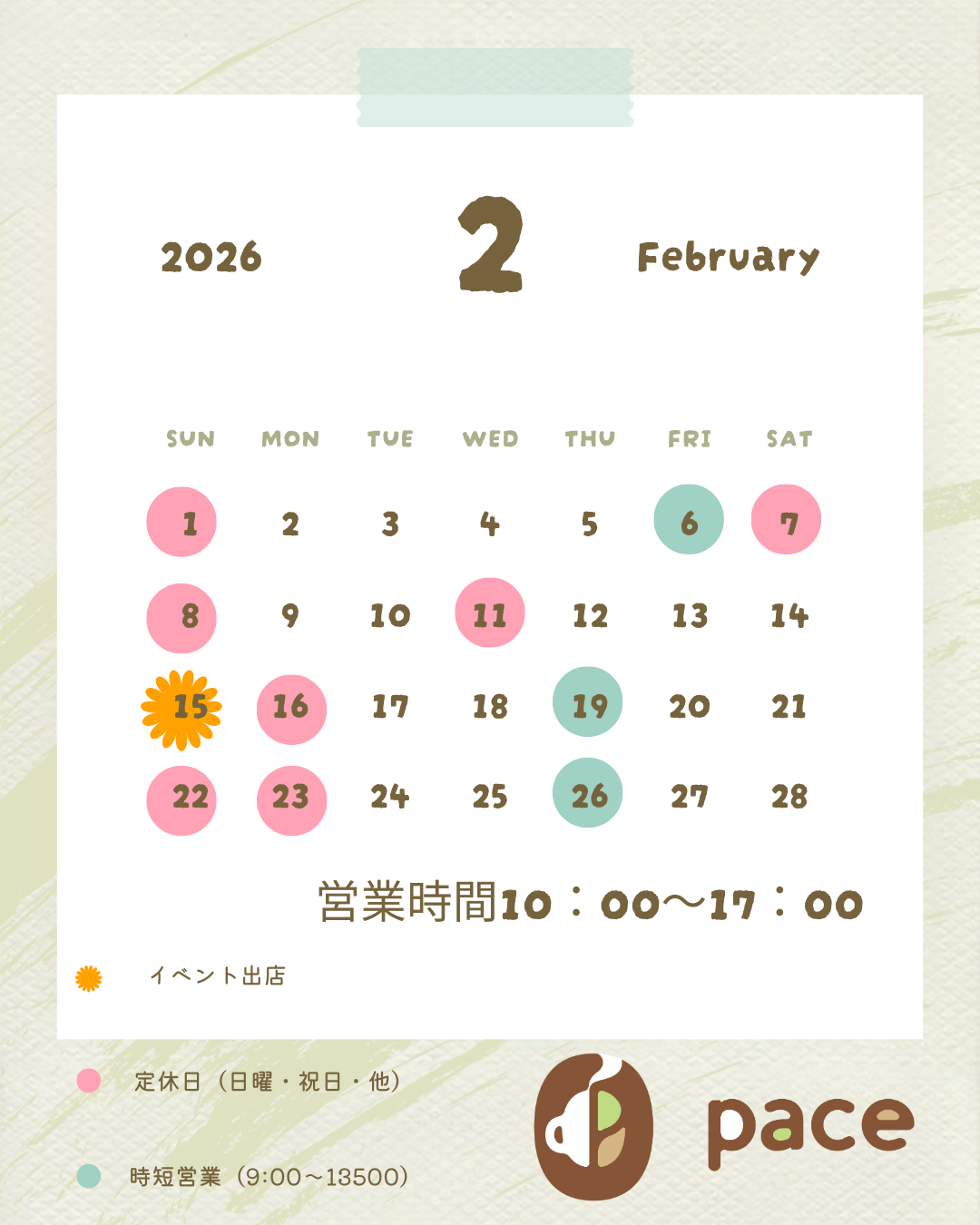 2月のカフェ営業日です!