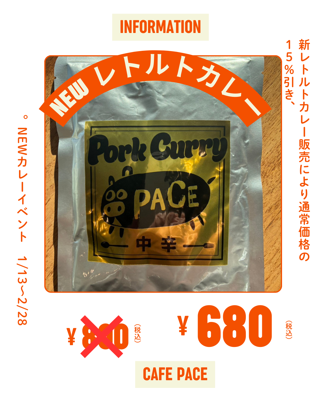 カレーフェアーとして、定価税込800円のところ、15%OFFの680円でご購入できます。