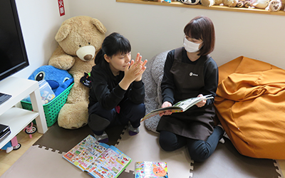 二交代制でお昼休憩1時間です。食後は、読書したりパズル・アイロンビーズ等各自好きな事をして過ごします。